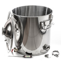 Distillation cube 50/400/t with CLAMP (3 inches) under the heating element has an easy-to-use cover of 400 mm and a flat bottom, therefore it is suitable for use on stoves of all types and sizes, incl. induction. With it, moonshine will turn from a procedure for making homemade alcoholic beverages into a real art, the end result of which will be a high-quality, clean and incredibly tasty drink that you can pamper yourself and all your friends with. The presence of a 2-inch flange allows you to install heating elements with the appropriate size and different capacities to reduce the heating time of the primary wort and reduce energy costs. Thanks to this, home brewing will turn from a procedure for making homemade alcoholic beverages into a real art, the end result of which will be a high-quality, clean and incredibly tasty drink with which you can pamper yourself and all your friends. And the presence of a drain valve will allow you to conveniently and safely drain the residues of vinasse after the end of distillation or rectification.